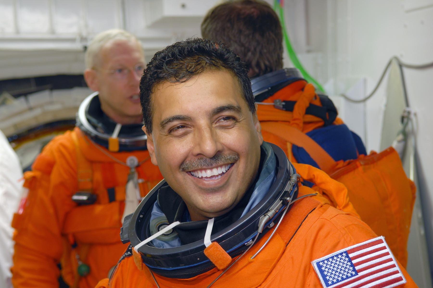 José Hernández con su uniforme de astronauta.